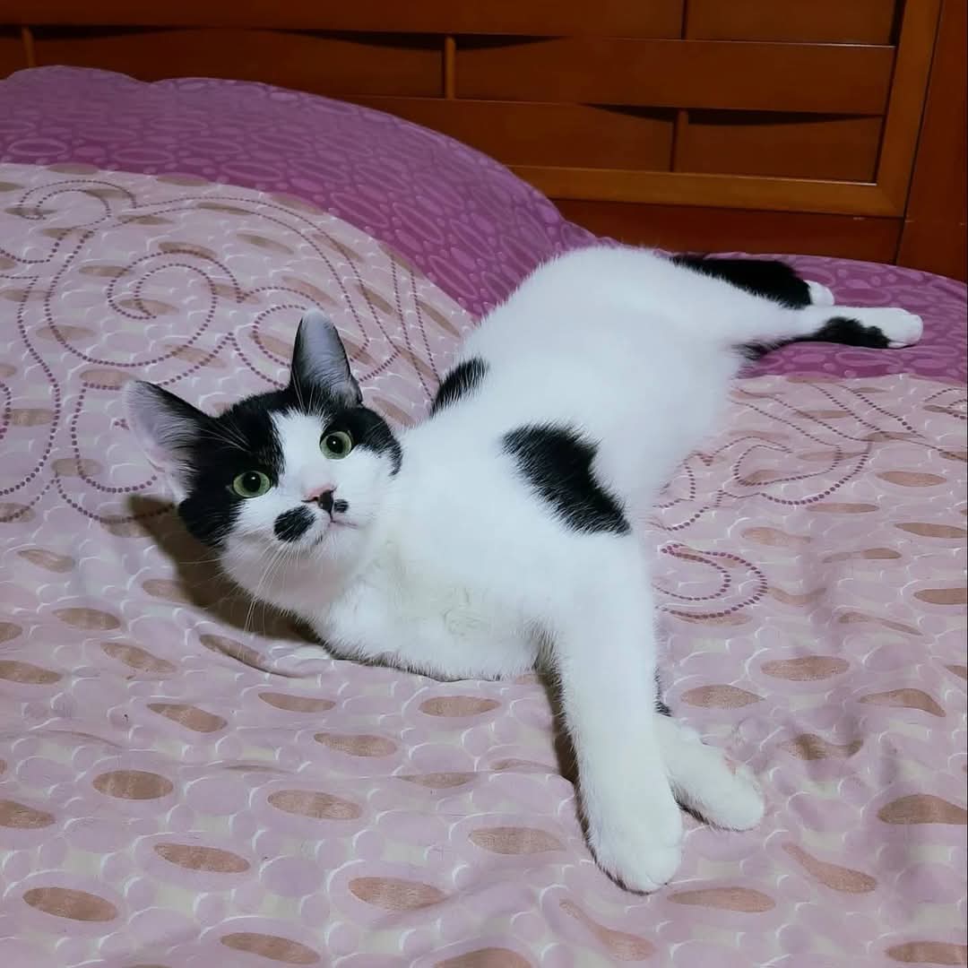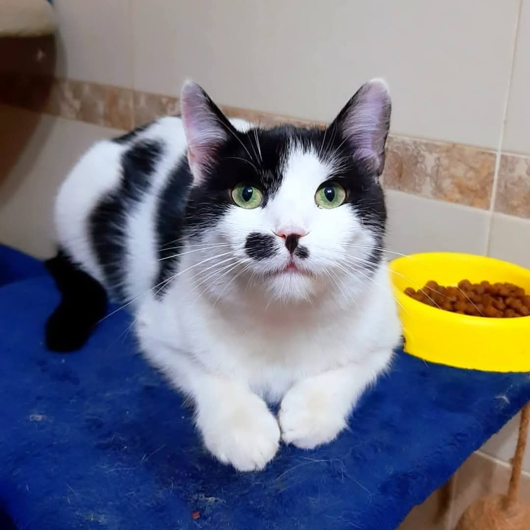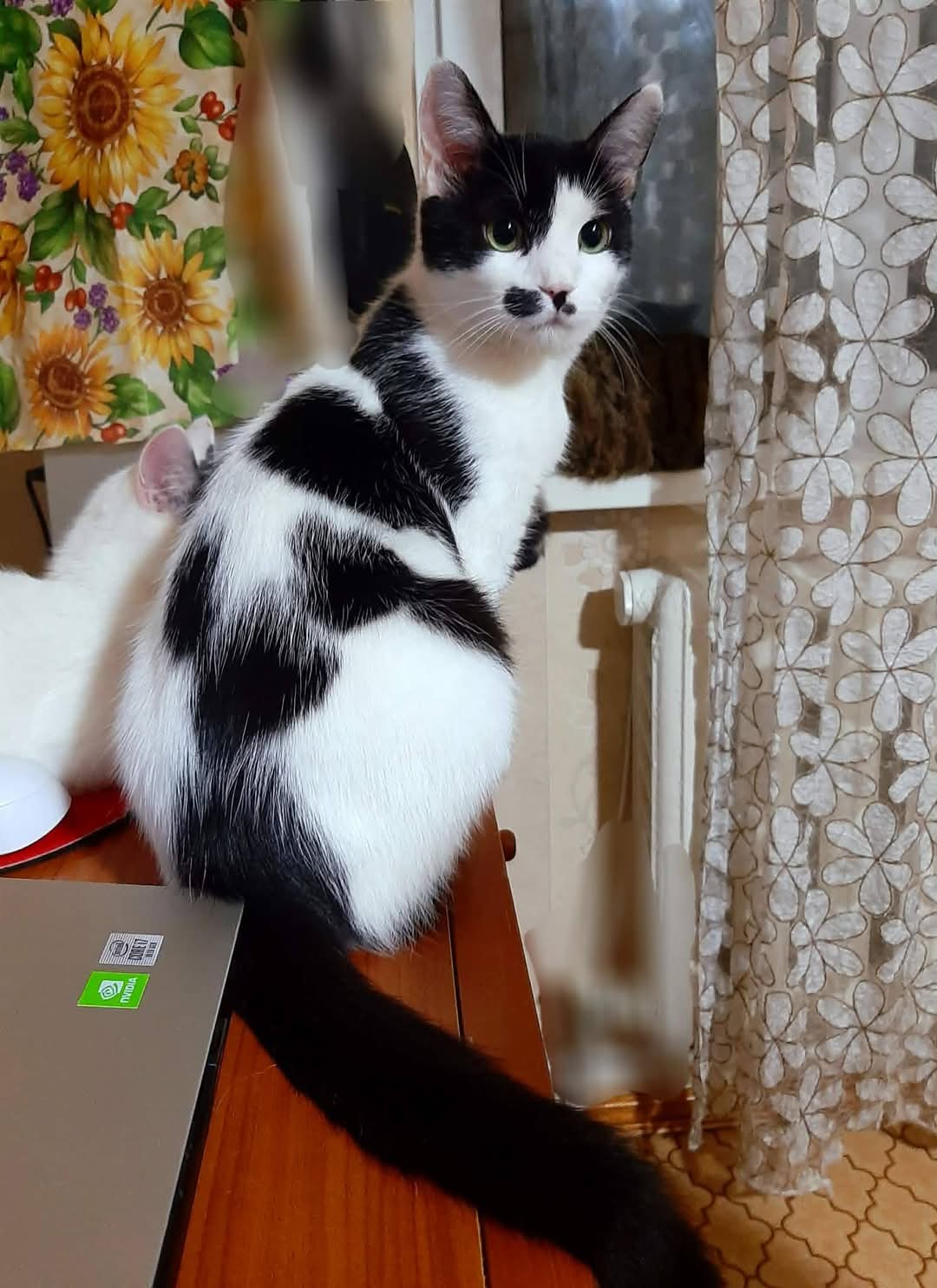 Посмотрите какой красавчик 😻 какой окрас необычный, чёрные пятна на белом...а глаза?